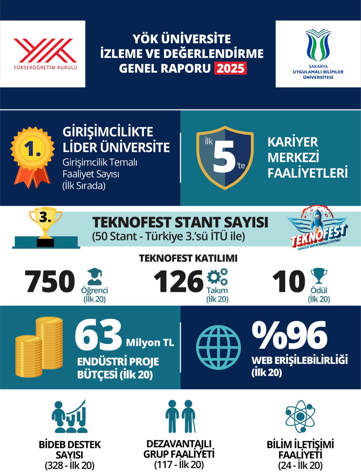 Our university ranked among the top 20 universities in 11 categories of the 2025 Monitoring and Evaluation General Report prepared by the Council of Higher Education (YÖK) and became the university hosting the highest number of entrepreneurship activities in Türkiye.