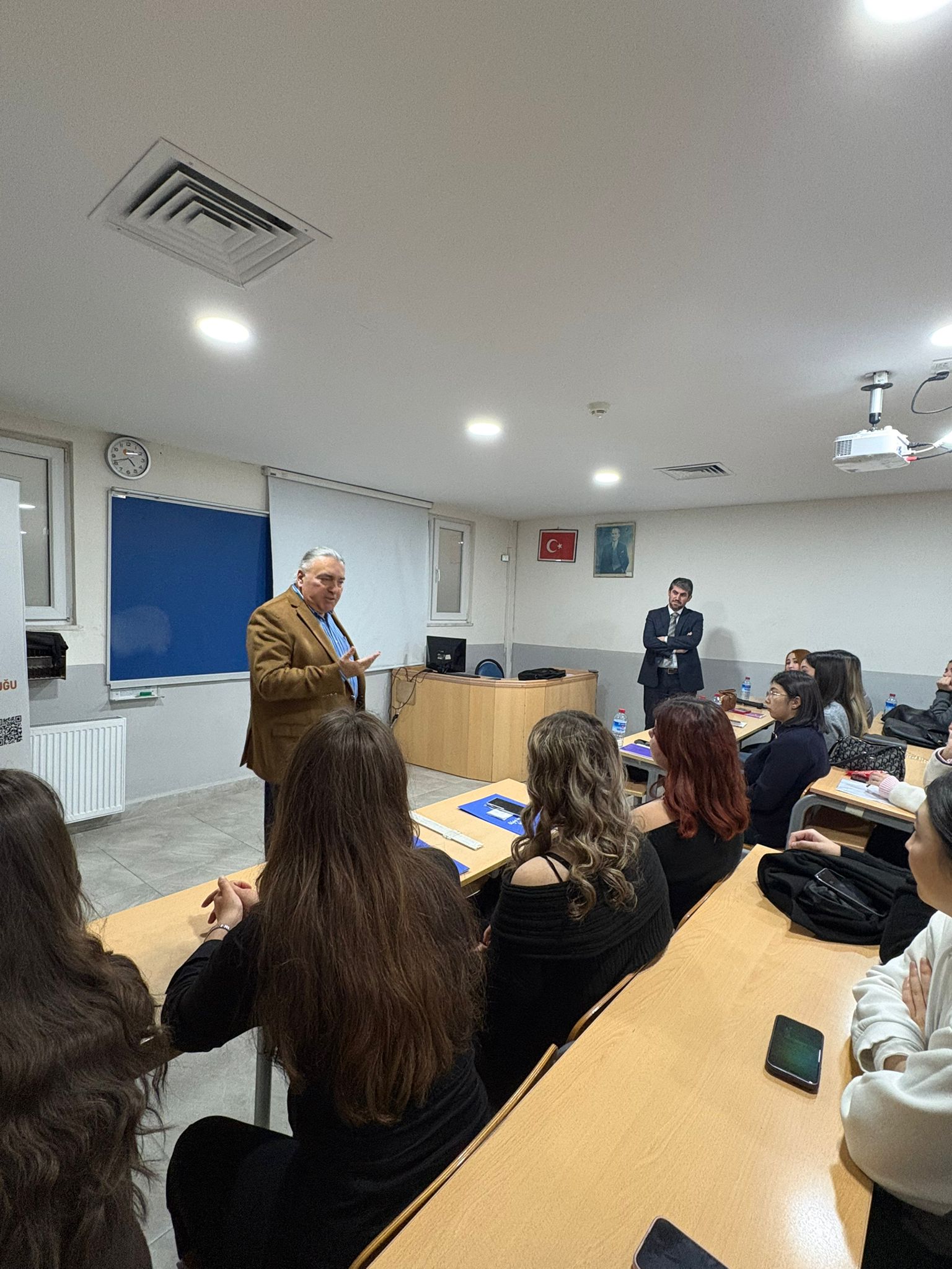 At the event titled Strategic Leadership Perspective on Logistics and Warehouse Management, current developments in the logistics sector, strategic approaches to warehouse management, and key insights on career planning were discussed. Mr. Aba shared his professional experience with the students, providing guidance and valuable perspectives to the participants.