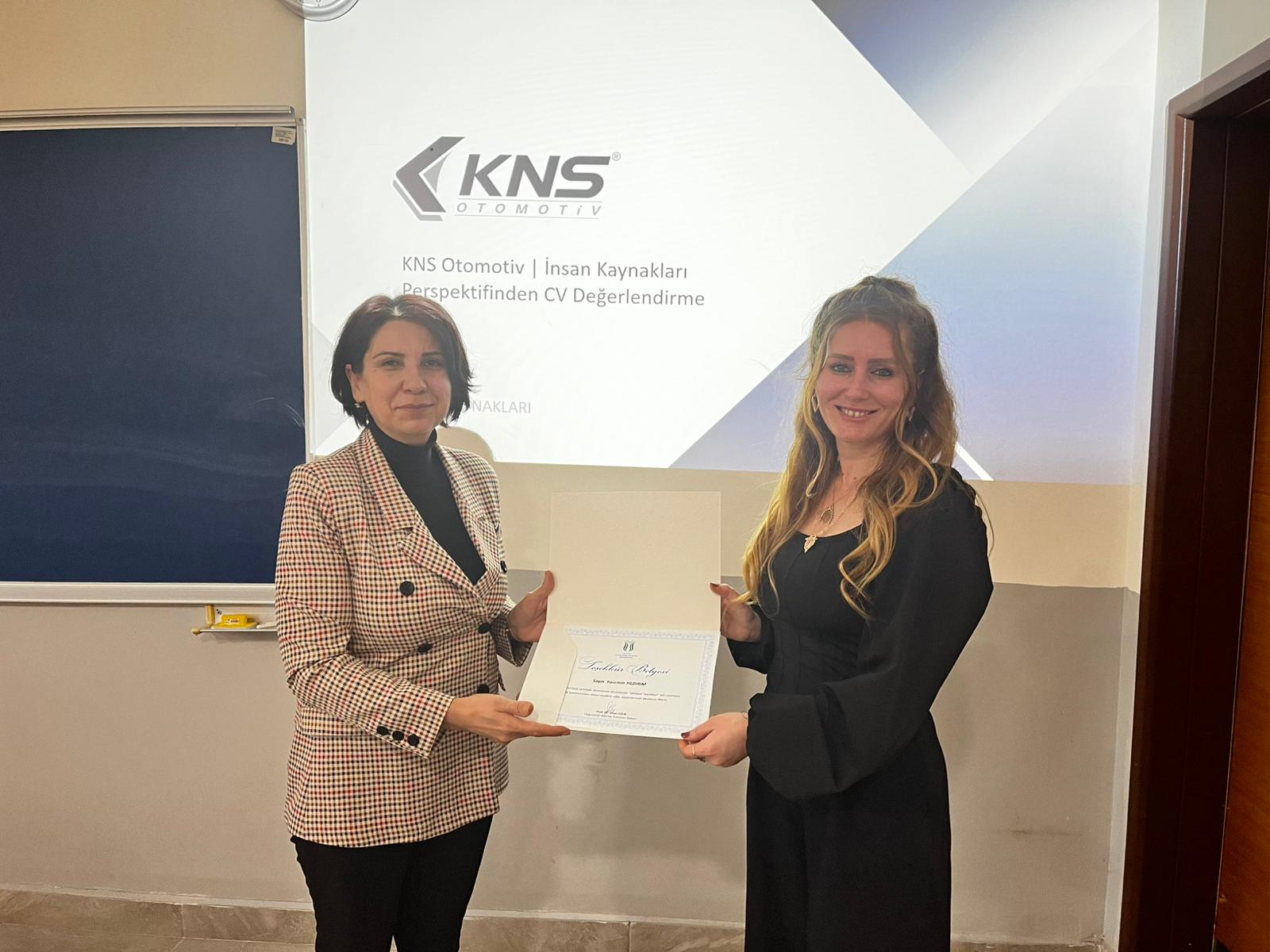 Within the scope of the Career Management course conducted by our Faculty, a practical training event was organized for our students with the participation of representatives from KNS Automotive. The event was attended by Yasemin Yıldırım, Human Resources Manager of KNS Automotive, and Metin Kaya, Administrative Affairs Manager.