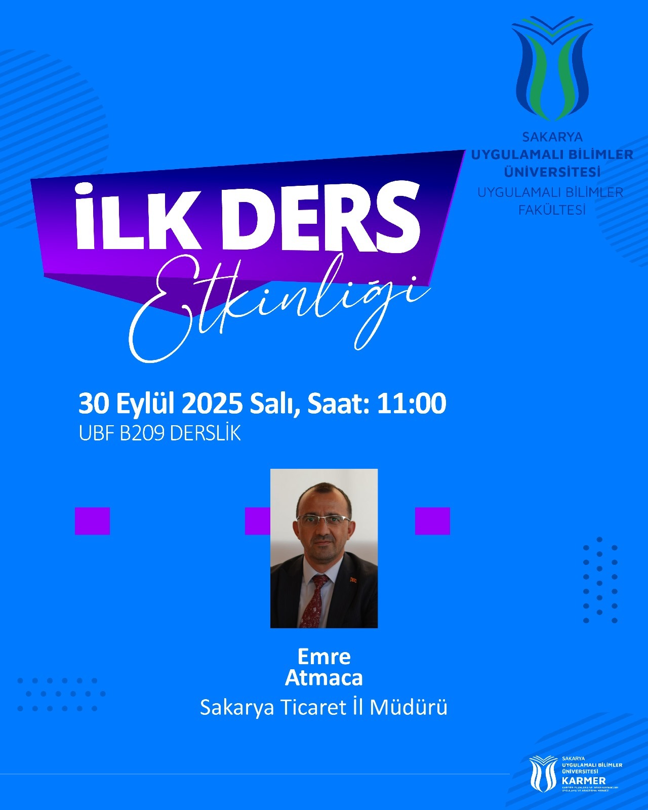 Sakarya Ticaret İl Müdürü Emre Atmaca konuk konuşmacı olarak yer alacak. Öğrencilerimizin sektör temsilcileriyle bir araya gelerek iş dünyası hakkında güncel bilgiler edinmeleri ve yeni döneme motivasyonla başlamaları hedeflenmektedir. Tüm öğrencilerimiz ve akademik personelimiz etkinliğe davetlidir.