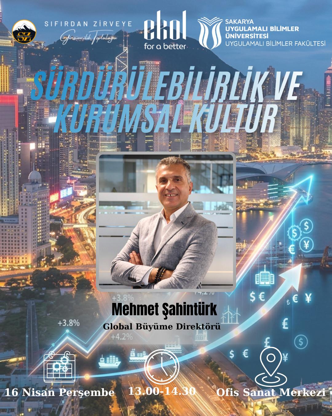 Etkinliğe konuşmacı olarak katılacak olan Mehmet Şahintürk (Global Büyüme Direktörü), sürdürülebilirlik kavramı ve kurumsal kültürün iş dünyasındaki rolüne ilişkin bilgi ve deneyimlerini katılımcılarla paylaşacaktır.