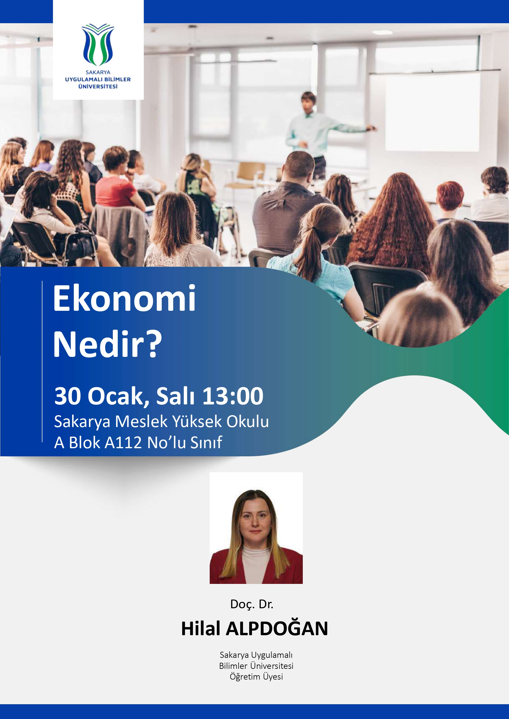Doç. Dr. Hilal Alpdoğan’ın konuşmacı olarak katılacağı bu etkinlikte, ekonominin temel kavramları, günlük hayatla ilişkisi ve günümüz ekonomik gelişmelerine dair genel bir çerçeve sunulacaktır. Öğrenciler ve konuya ilgi duyan tüm katılımcılar için bilgilendirici ve ufuk açıcı bir etkinlik olacaktır.