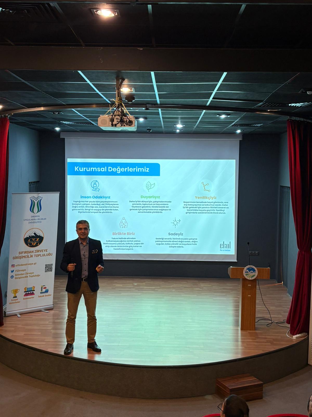 Etkinliğe konuşmacı olarak katılan Global Büyüme Direktörü Mehmet Şahintürk, sürdürülebilirlik kavramı ve kurumsal kültürün günümüz iş dünyasındaki önemi üzerine bilgi ve deneyimlerini katılımcılarla paylaştı. Konuşmasında sürdürülebilir büyüme stratejileri, kurumsal değerlerin önemi ve değişen iş dünyası dinamiklerine ilişkin değerlendirmelerde bulundu.